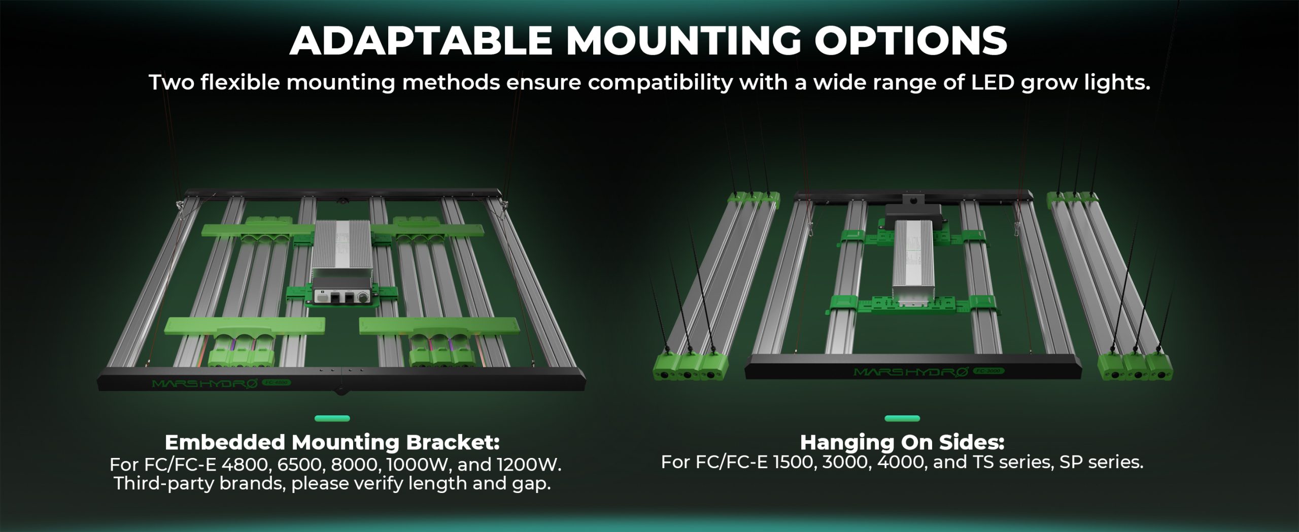 Flexibility: supplemental lights can be installed at custom positions or embedded into Mars Hydro FC / FCE fixtures using their bracket system for optimal light distribution.