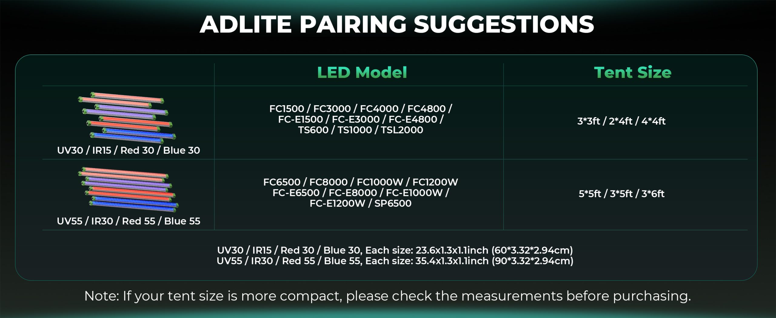 2025 Mars Hydro ADlite UV 55 + IR 30 Supplemental LED Grow Light Bars Combo